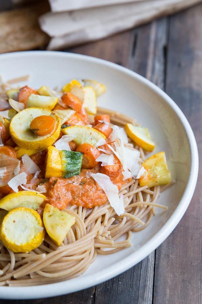 Healthy Recipes : A creamy vegan pasta sauce made of roasted tomatoes and veggies.