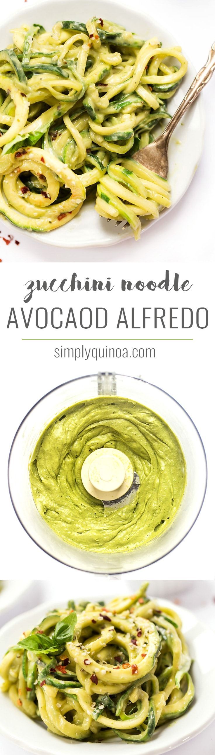 This easy AVOCADO ALFREDO is a twist on the classic but doesn’t use any dairy. To lighten things up even more we’re using zucchini noodles instead of pasta! Click here for the recipe! Simply Quinoa #simplyquinoa #avocadoalfredo #zucchininoodles