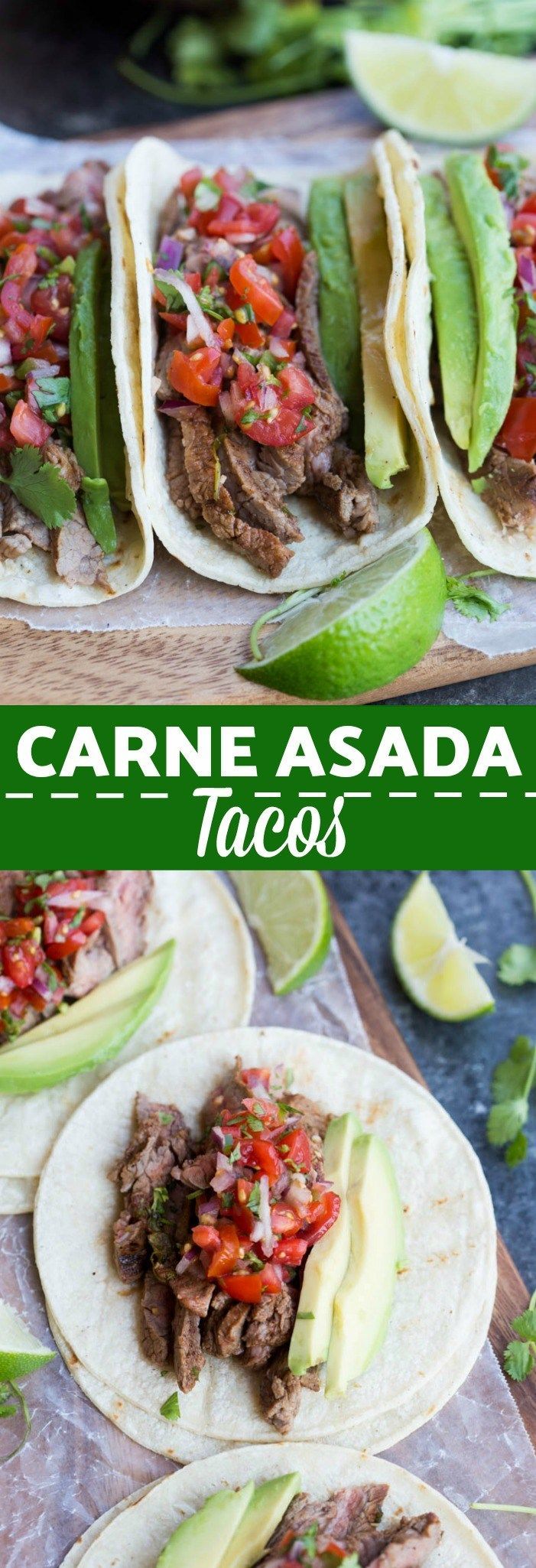 Carne Asada Tacos just as good as ones you could buy off the street in Mexico! Juicy, tender, marinated steak tacos served on a warm corn tortilla with fresh pico de gallo and avocado. | tastesbetterfroms… #tacos #mexican #aut