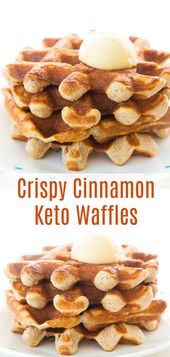 These Crispy Sweet Cinnamon Keto Waffles are perfect for waffles lovers that are on a low carb diet! They are sweet, so we topped them with some salted butter and they were heavenly! #keto #lowcarb #breakfast #waffles