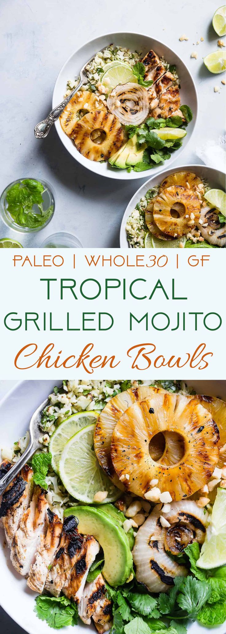 Grilled Tropical Chicken Bowls – These paleo and whole30 compliant Grilled Tropical Chicken bowls are an easy, healthy and gluten free weeknight dinner loaded with sweet and tangy island flavors! Sure to be a crowd pleaser! | #Foodfaithfitness | #Paleo #Whole30