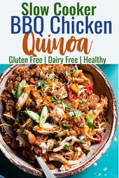 Slow Cooker Healthy BBQ Chicken Quinoa Casserole – This chicken and quinoa casserole is made in the crock pot so it’s SUPER quick and easy. Perfect for weeknights and the WHOLE family will love it – even picky eaters! | #Foodfaithfitness | #Glutenfree #Dairyfree