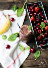 Berry Cherry Jubilee- With the sweet combination of cherries and mixed berries, this recipe is packed with antioxidants. There are many added health benefits when you add cherries to your green smoothie recipes! #SimpleGreenSmoothies #healthy #leafygreens