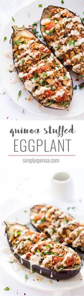 Healthy Recipes : Quinoa Stuffed Eggplant with Tahini Sauce – Simply Quinoa