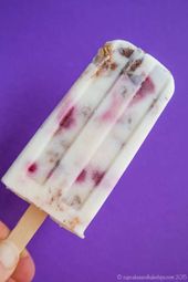 Raspberry Chocolate Almond Crunch Frozen Yogurt Popsicles – cool off this summer with a cold, creamy treat filled with berries and Cascadian Farm Dark Chocolate Almond Coconut Granola Bark. #AD #cupcakesandkalechips #glutenfree