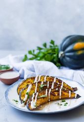 This roasted acorn squash is served with a spiced yogurt sauce that you’re going to find absolutely irresistible! It’s a great way to switch up things from plain ol’ acorn squash!