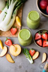 Strawberry Peach Refresher green smoothie, made with bok choy! www.simplegreensm… #SimpleGreenSmoothies