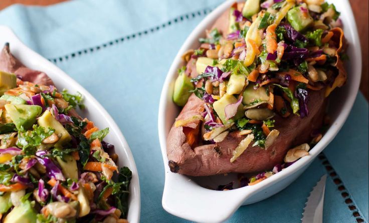 Famous Loaded Sweet Potato – Sweet potatoes are one of our favorite veggies! Despite their name, they are actually low on the glycemic index (which helps balance the blood sugar), and are packed with vitamin A, B vitamins, potassium and fiber. #SimpleGreenSmoothies #healthy #sides