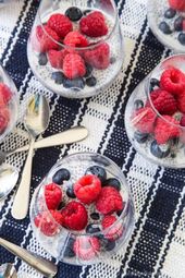 Triple Berry Coconut Chia Pudding Parfaits – the perfect summer breakfast, snack, or dessert when fresh berries are in season. Layer fresh strawberries, blueberries, and raspberries with coconut chia cream for a superfood treat for Memorial Day, Fourth of July, or Labor Day menu that is gluten free, vegan, and paleo. #cupcakesandkalechips #glut