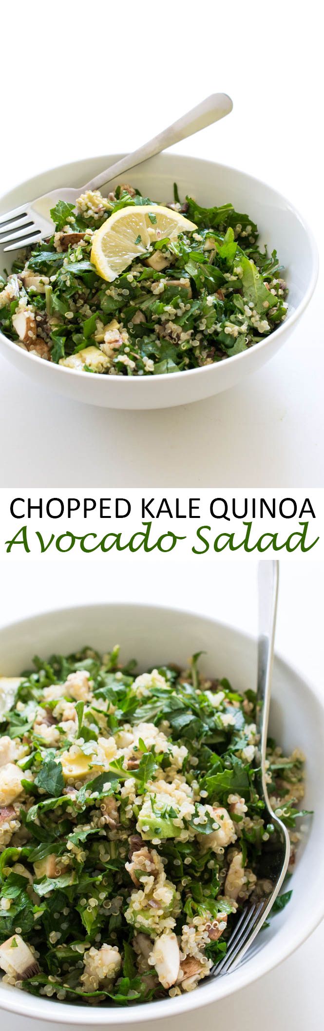 Nutrient packed Kale Quinoa and Avocado Salad. Super healthy and loaded with tons of fresh flavor! | chefsavvy.com #recipe #salad #avocado #kale #quinoa