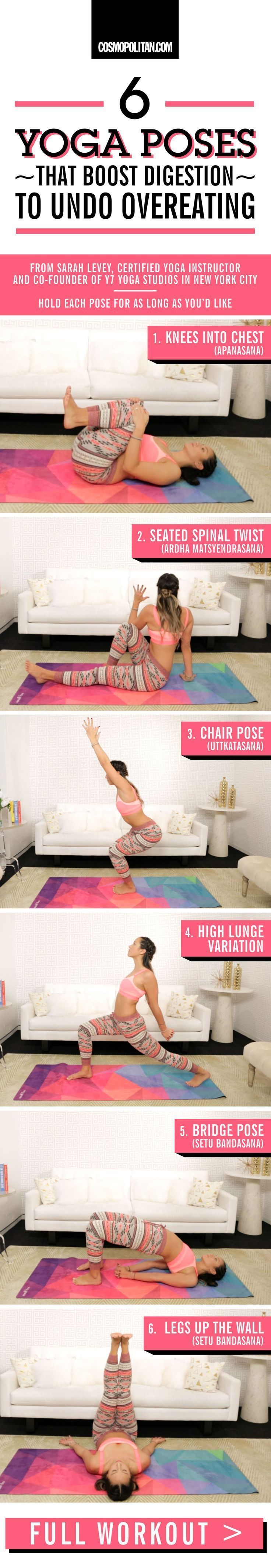 THE BEST WORKOUT FOR OVEREATING: Boost digestion, open the front of the body, and increase circulation to the abdominal organs with some gentle, yoga-inspired stretches from Sarah Levey, co-founder of Y7 Studio in New York City and certified yoga instruct