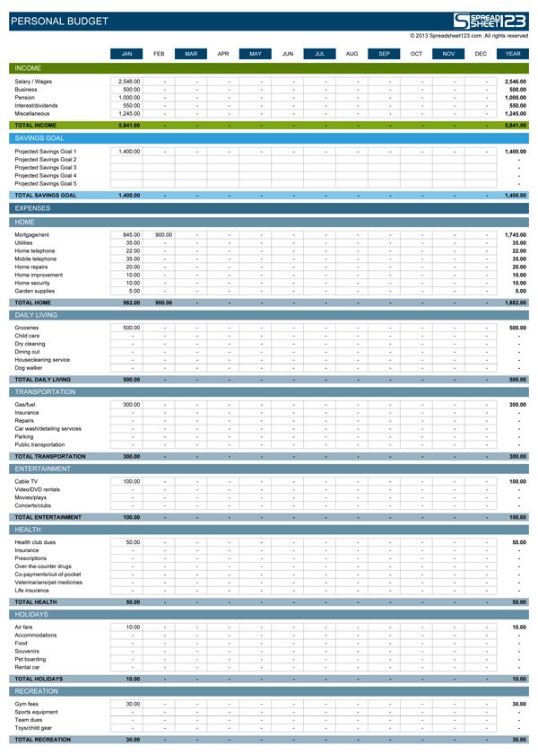 Download a free Personal Budget Spreadsheet with categories suitable for personal or small family budgeting, includes Savings Goal Tracker and Budget Dashboards, helps to create budget for entire year.