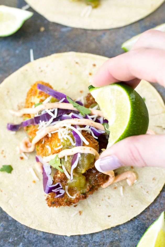 Fried Avocado Tacos are all about the freshness, richness, and bold flavors. A squeeze of lime juice makes it so amazing!