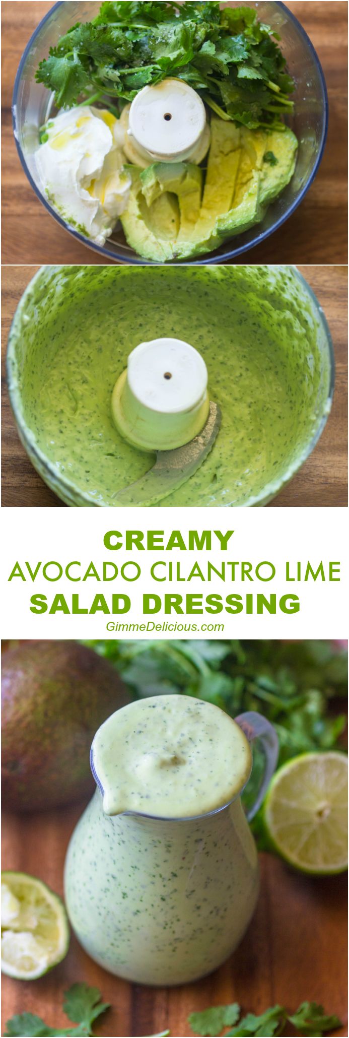 Healthy Creamy Avocado Cilantro Lime Dressing | Gimme Delicious @ INSTRUCTIONS Place all the ingridents In a food processor or blender. Process until smooth, stopping to scrape down the sides a few times. Thin the salad dressing out with about ⅓ cup water (give or take) until it reaches a desired consistency. Keep in an airtight container for 1-2 weeks.