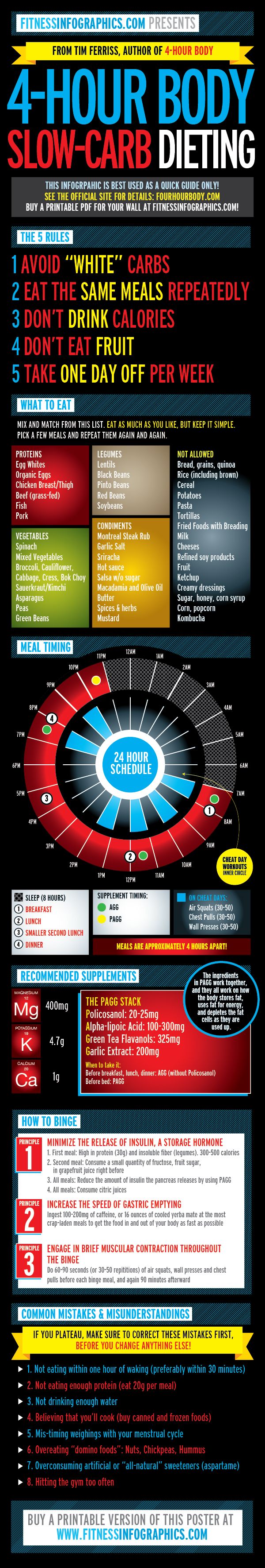 Diet Plans: Infographic: 4-Hour Body (Slow-Carb)… October 10, 2017, 11:07 pm 1.9k Views Fast Diet : Illustration Description Infographic: 4-Hour Body (Slow-Carb) 19 shares