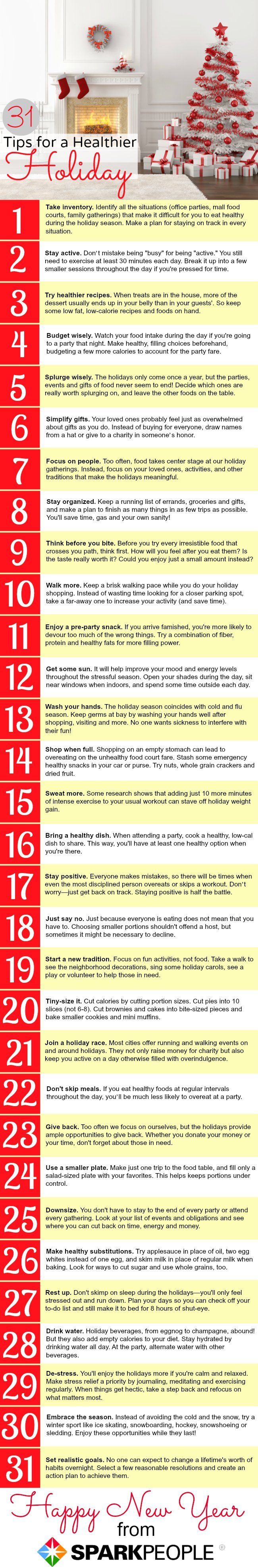 31 Tips for a Healthier Holiday Season: Repin now to stay on track throughout December! | via @SparkPeople #challenge #health #fitness #diet #christmas #hanukkah