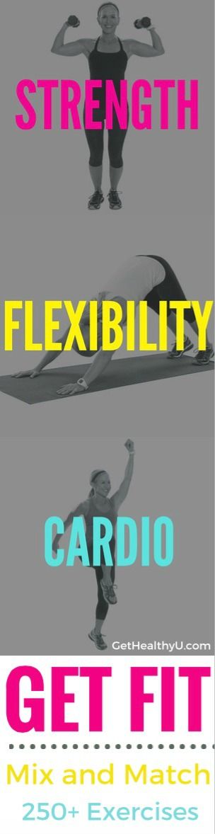 Tone and tighten with Get Healthy U’s free Exercise Library! 250 exercises with photos and descriptions to mix and match your own workout. Choose between bodyweight, cardio, dumbbells, resistance band, exercise ball, medicine ball, yoga, and more!
