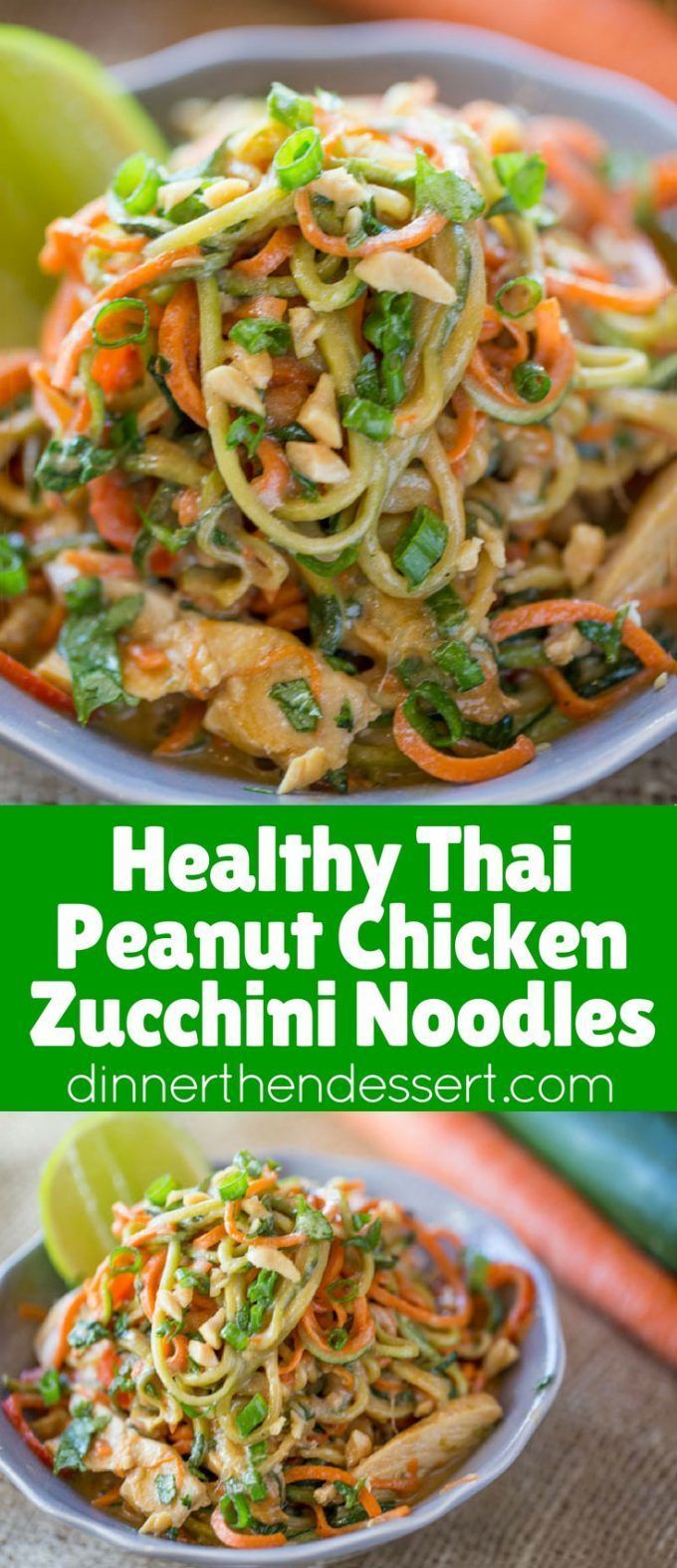 Healthy Eating : Healthy Thai Peanut Chicken Zucchini Noodles with a fresh peanut lime sauce mixe…
