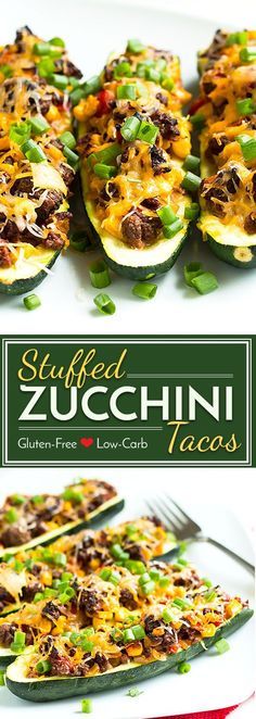 These stuffed zucchinis with taco filling are super light, low-carb and make an excellent lunch or dinner recipe for a busy week! Substitute ground tofu for the meat, and these stuffed zucchini tacos can easily be made vegan and vegetarian!