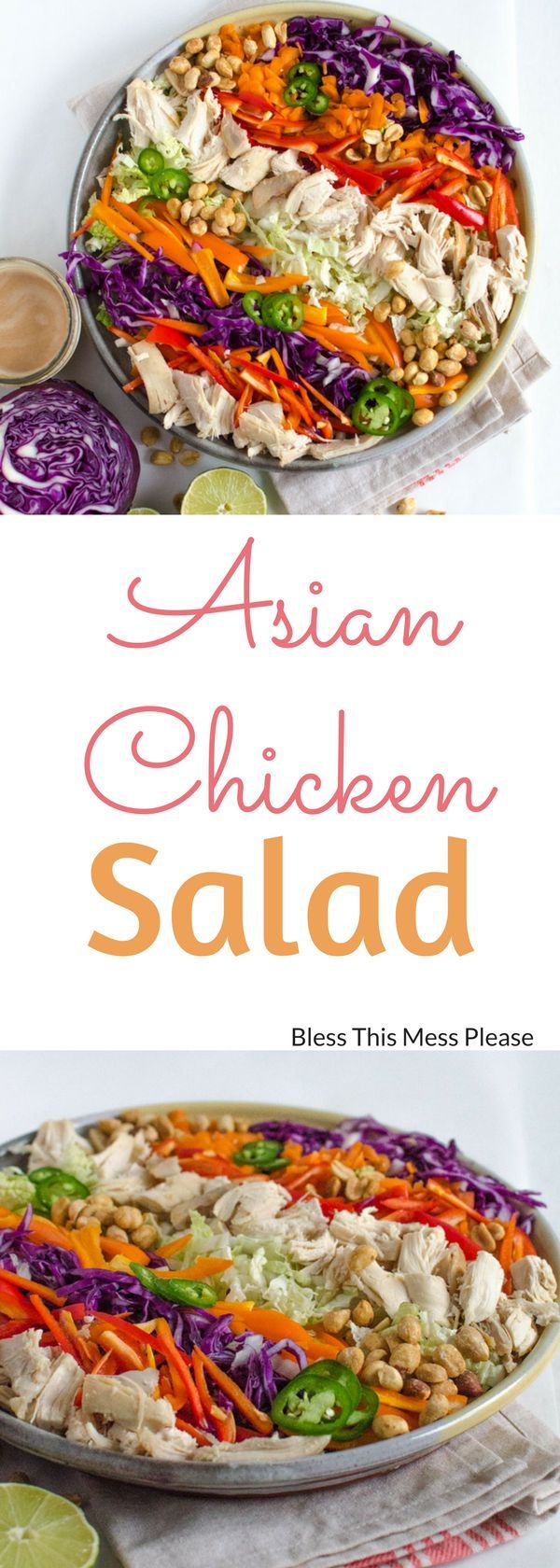 Asian Chicken Salad with Peanut Lime Dressing – you’ll love this delicious chicken salad that is healthy, quick, and so colorful! #chickensalad #healthy #summersalad #glutenfree #blessthismessplease