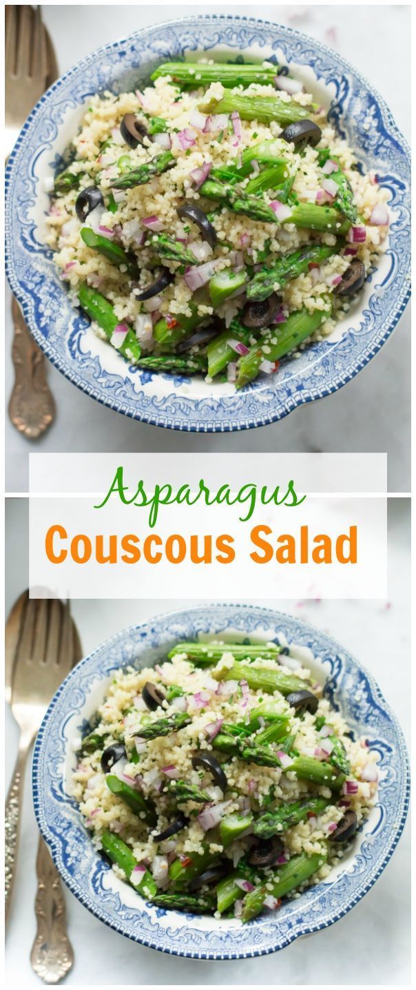 Asparagus Couscous Salad – This fresh, summery and simple asparagus couscous salad is tossed with asparagus, whole wheat couscous, red onions, kalamata olives and homemade vinaigrette. This is definitely a tasty and vibrant summer meal. #couscous #summersalad #asparagus #primaverakitchen
