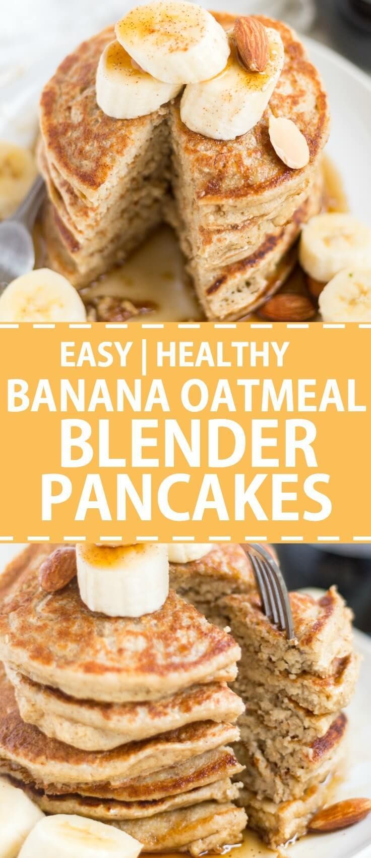 Banana oatmeal blender pancakes are sweetened naturally with bananas and maple syrup and blended together for an easy and healthy breakfast recipe. Top these healthy oatmeal blender pancakes with fresh fruit, nuts, almond butter or syrup and serve!