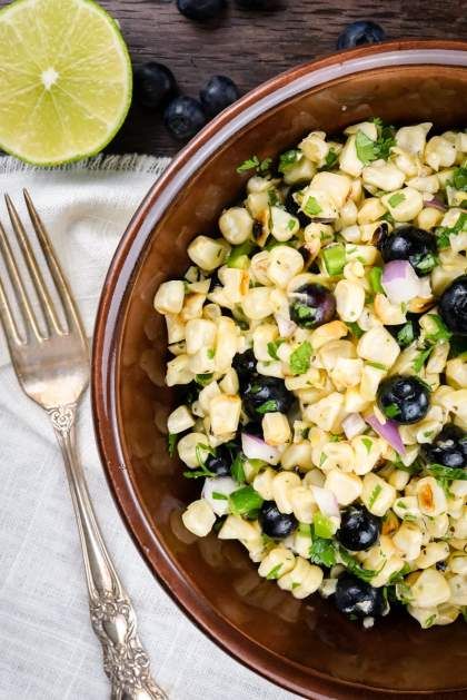 Blueberry Corn Salad with Honey Lime Vinaigrette is packed with fresh corn, blueberries, cilantro, red onion, and delicious honey lime vinaigrette.