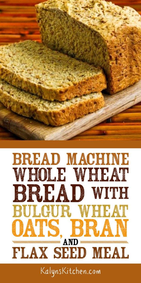 Bread Machine Whole Wheat Bread with Bulgur Wheat, Oats, Bran, and Flax Seed Meal is a healthier whole wheat bread to make in the bread machine! [found on KalynsKitchen.com] #kalynskitchen #WholeWheatBreadMachineBread