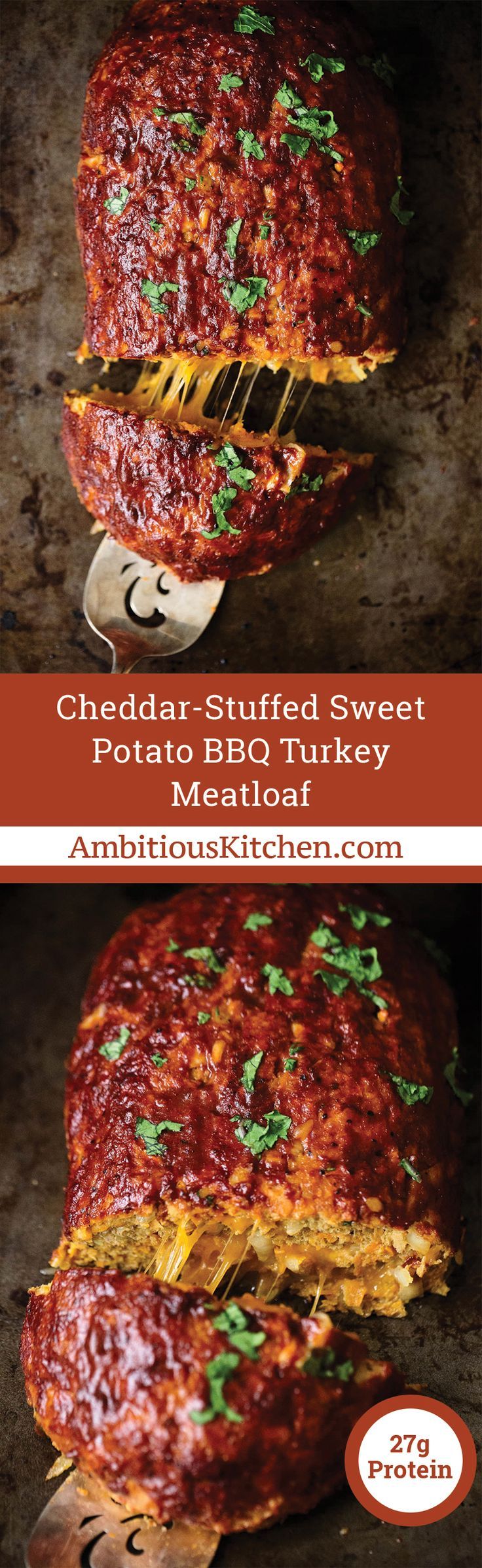 Healthy Recipes : Cheddar-Stuffed Sweet Potato BBQ Turkey Meatloaf October 2, 2019, 8:45 pm 2.2k Views Healthy Recipes Illustration Description Outrageously delicious & healthy sweet potato BBQ turkey meatloaf stuffed with sharp cheddar cheese. Easy to make and bound to become a dinner staple! 19 shares