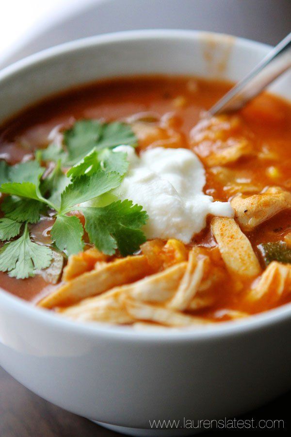 Easy Chicken Tortilla Soup….a low fat, veggie-packed soup that’s ready in 30 minutes?! Sign me up!! #laurenslatest #tortillasoup #healthyrecipes #easyrecipes