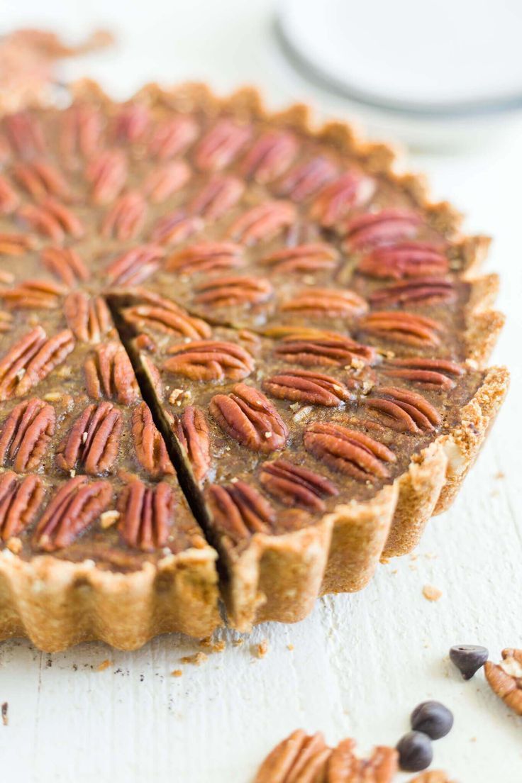 This chocolate paleo pecan pie recipe is dairy free, gluten free and refined sugar free! It's a great clean eating recipe for Thanksgiving. The crust is made with almond flour and coconut flour and the filling has no corn syrup and is made with rich choco