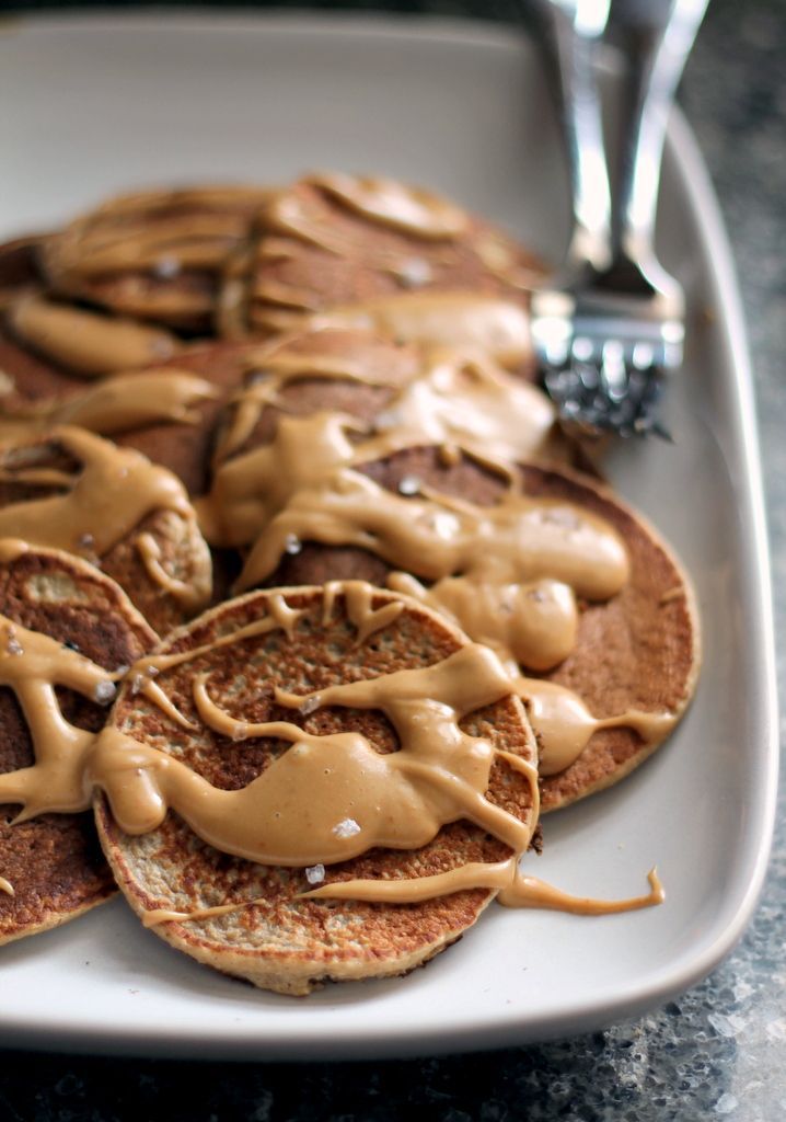 Healthy Recipes : Cinnamon Applesauce Oatmeal Pancakes with Salted Peanut Butter Maple Syrup