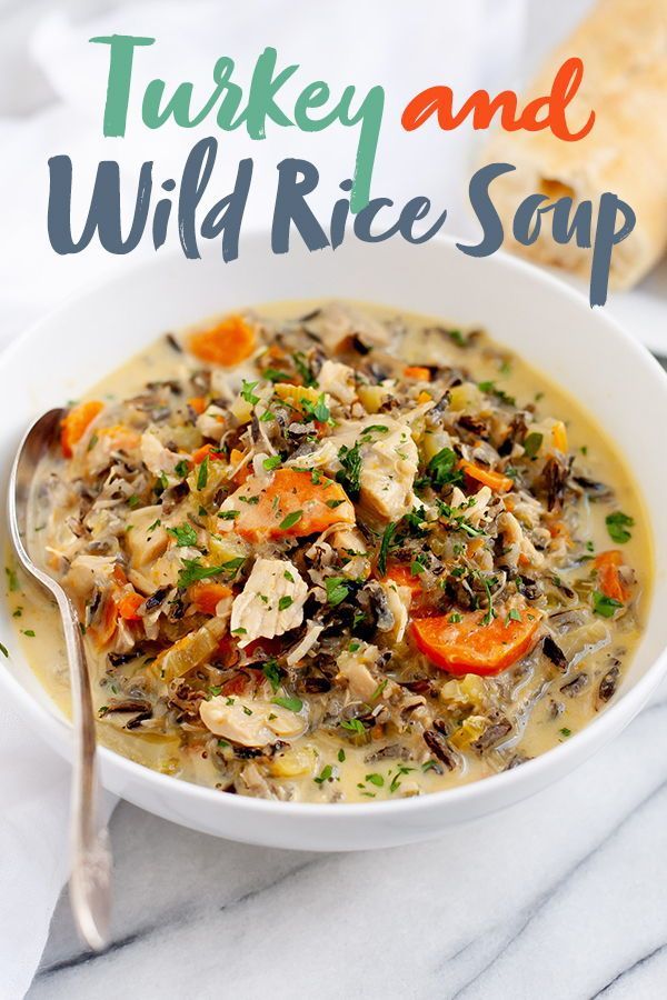 This comforting Cream of Turkey and Wild Rice Soup is the perfect way to use up your Thanksgiving leftovers. If you don’t have turkey, chicken and chicken broth will work as well! #creamofturkeysoup #healthysouprecipes