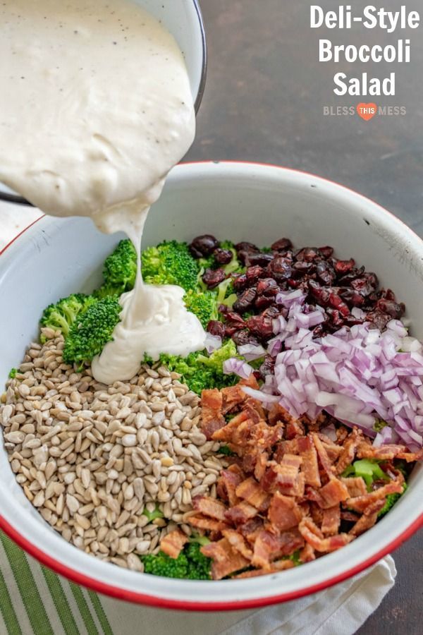 Healthy Recipes : Deli-Style Broccoli Salad August 11, 2019, 9:24 am 1.6k Views Healthy Recipes Illustration Description Deli-Style broccoli salad made with all your favorites like bacon, onion, cranberries, and more, plus a secret tip! #sidedish #broccolisalad #salad #broccoli 19 shares