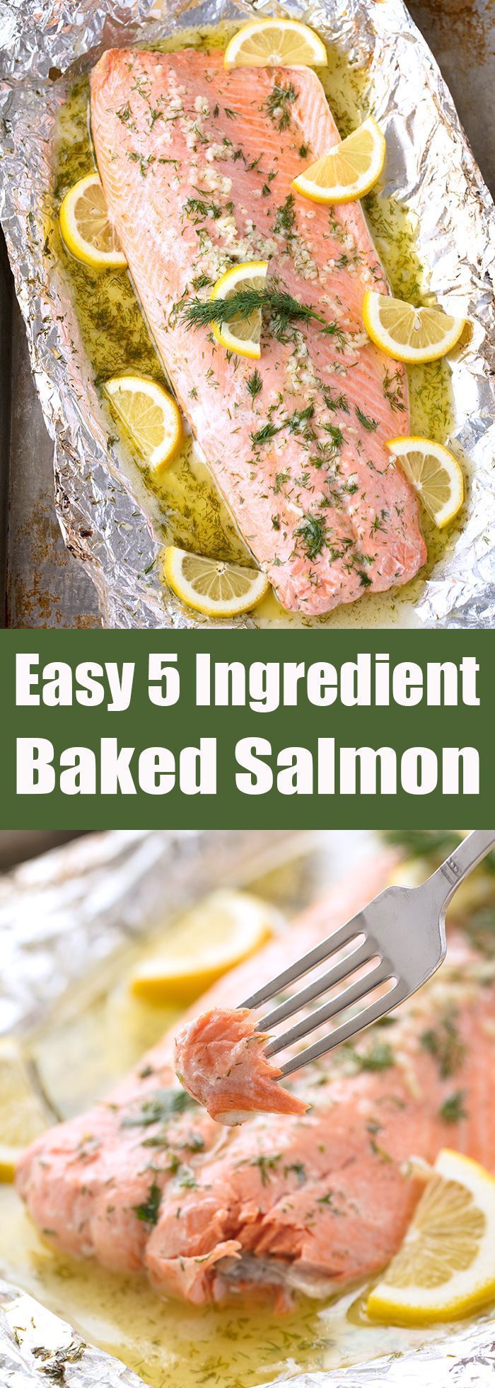 It doesn’t get much easier than this Easy 5 Ingredient Baked Salmon with a garlic, lemon, and dill butter sauce. All it takes is 5 ingredients and 20 minutes of your time. So simple, so flavorful! #thestayathomechef #bakedsalmon #easydinner #salmon #fishrecipe