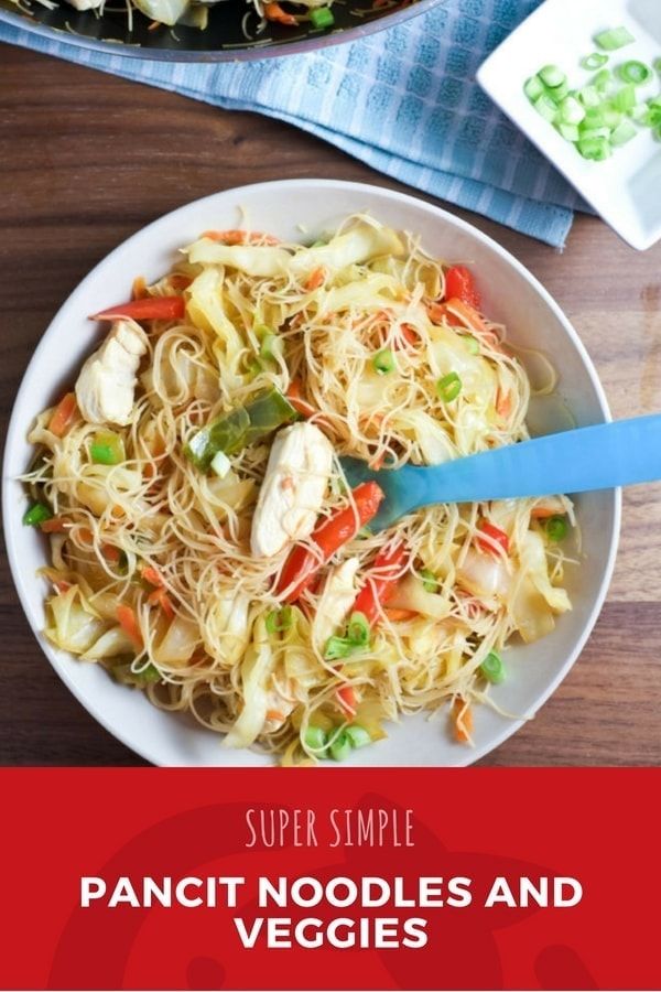 Easy Pancit Noodles and Veggies Filipino pancit is a delicious noodle and veggie stir-fry that is quick, easy, and pleases a crowd. Make it with chicken with cabbage, bell pepper, and carrots for a traditional version, or swap in your family’s favorite veggies and proteins.