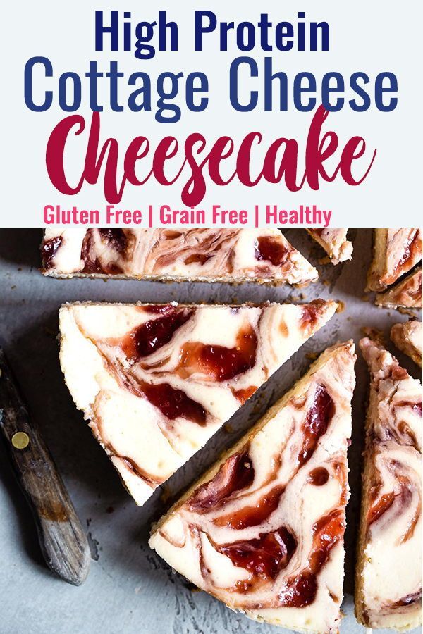 Gluten Free Strawberry Swirled Cottage Cheese Cheesecake – This Healthy Cottage Cheese Cheesecake is packed with protein and is so easy to make! Gluten free, grain free, better for you and SO creamy! | #Foodfaithfitness | #Glutenfree #Grainfree