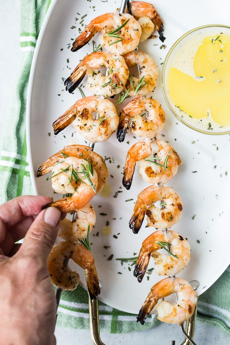 Yummy grilled shrimp served with a rich rosemary beurre blanc sauce. These grilled shrimp make a great appetizer! #grilling #summergrilling #beurreblanc #shrimp
