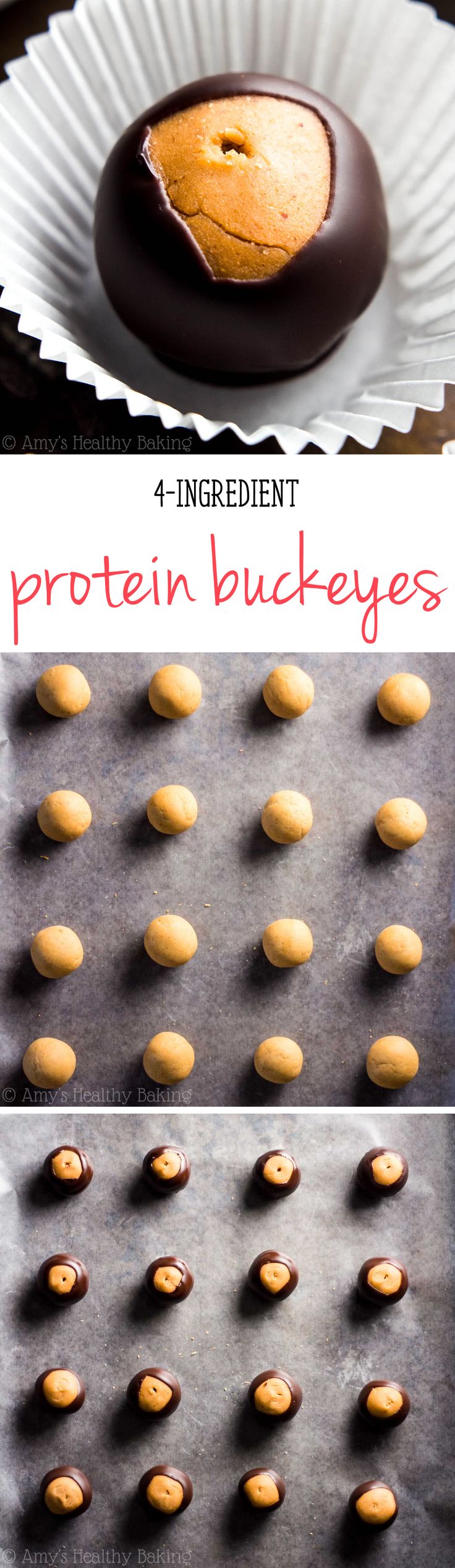 GUILT-FREE CANDY! So easy to make, nearly 3g of protein & perfect for the holidays! Chocolate + peanut butter = the perfect combo! ♡ easy buckeyes recipe. healthy buckeye candy recipe. healthy low carb buckeyes.