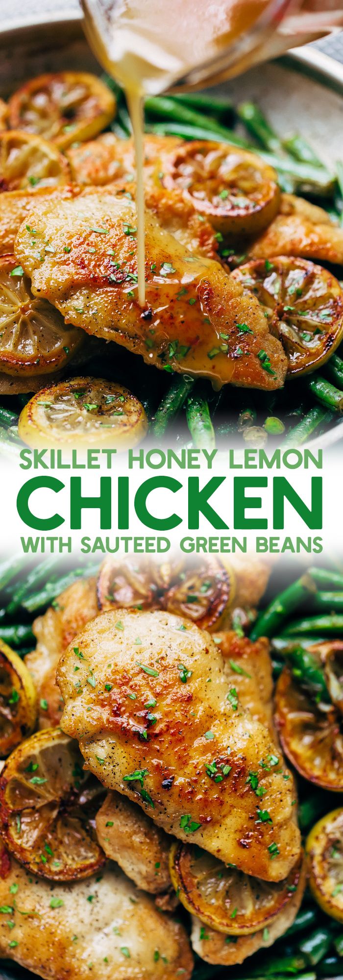 Honey Lemon Chicken with Sautéed Green Beans – simple seared chicken and sautéed green beans drizzled in homemade honey lemon butter sauce. This takes 30 minutes from start to finish and is weeknight friendly! #honeylemonchicken #lemonchicken #chickendinner | Littlespicejar.com