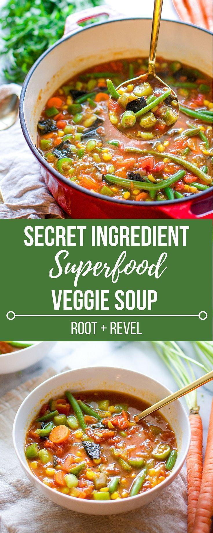In less than 30 minutes, this superfood veggie soup will bring comfort to your table. 2 secret ingredients add MAJOR flavor. Healthy, vegan and gluten-free.
