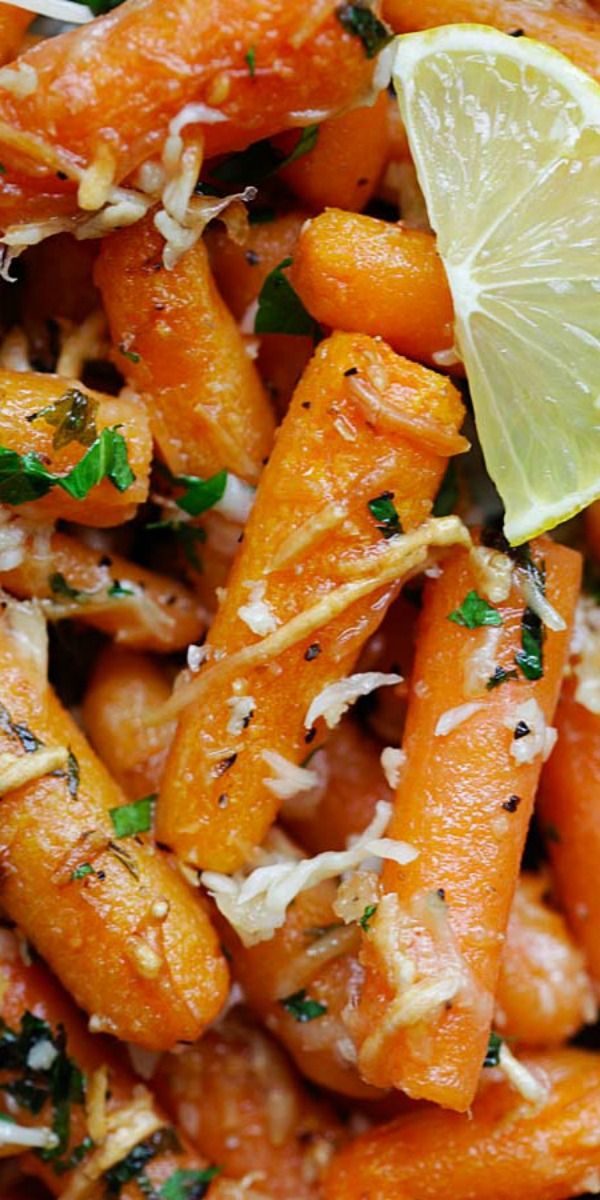 Healthy Recipes : Lemon Parmesan Roasted Carrots – tender, garlicky, lemony and cheesy roasted car…