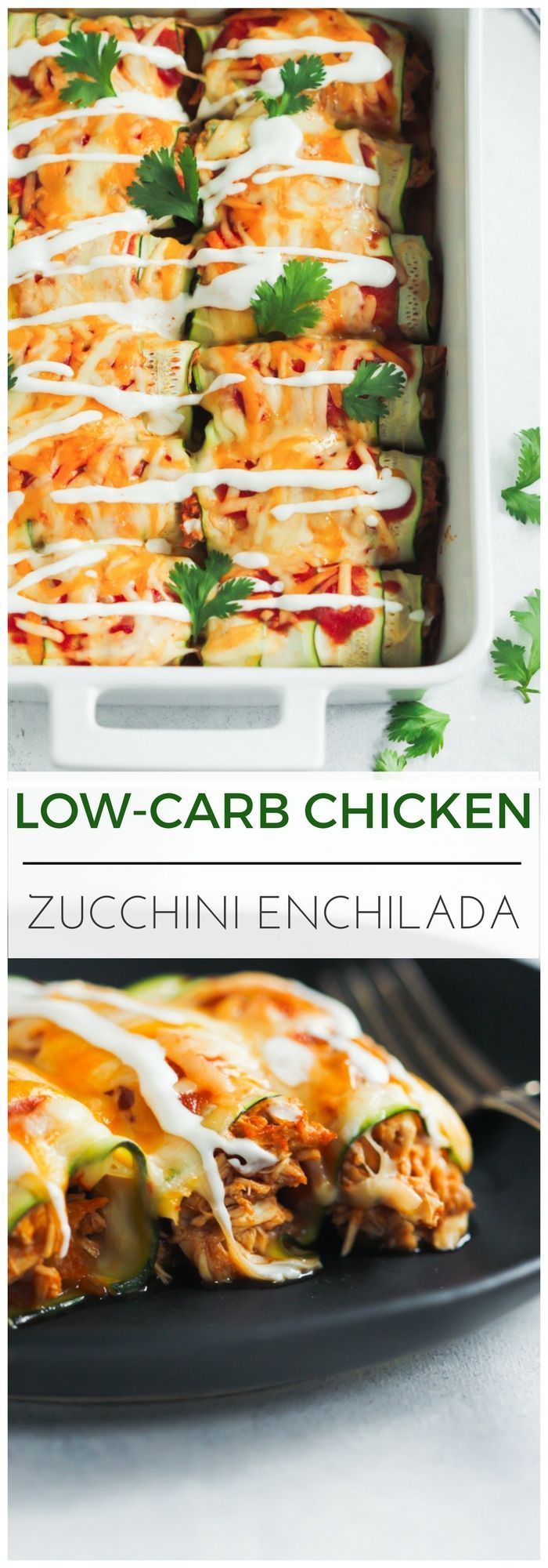 Low-carb Chicken Zucchini Enchilada – This Low-carb Chicken Zucchini Enchilada is made with “zucchini tortillas” and it’s loaded with enchilada sauce, chicken and cheese. It’s also gluten-free and very flavorful! #chickenenchiladas #zucchinienchiladas #glutenfreenchiladas #glutenfree #primaverakitchen