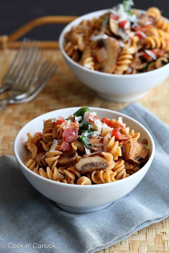 Healthy Recipes : Mushrooms, bacon and spinach in a lighter whole wheat pasta recipe that’s ready …