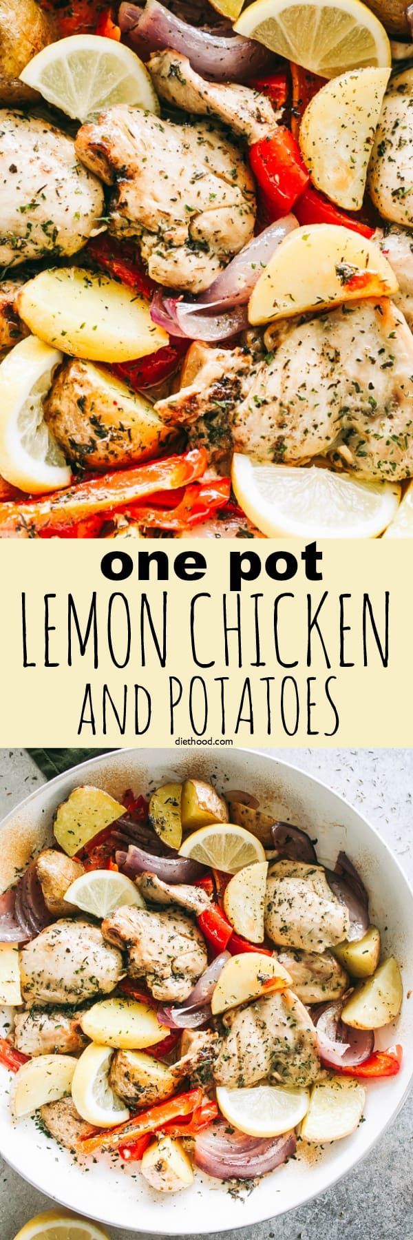 One-Pot Lemon Chicken and Potatoes – This super easy, amazingly flavored dish with lemon chicken, veggies, and potatoes is a complete meal made all in one pot! #chickendinner #onepotmeals #potatoes #healthyeating