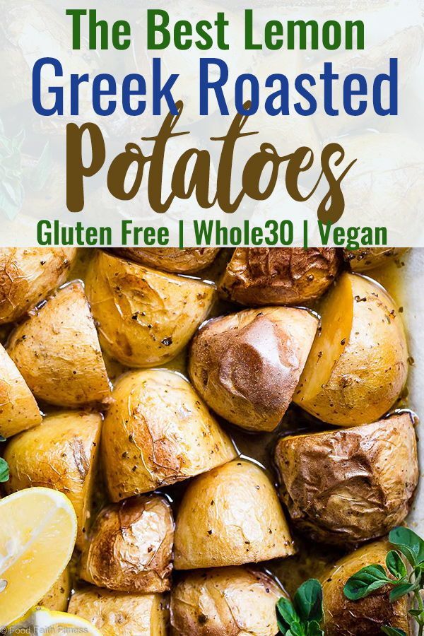 Oven Roasted Lemon Greek Potatoes – These are the BEST Oven Roasted Lemon Greek Potatoes! Tangy, zesty and so packed with flavor you will make them all the time! SO easy, whole30 complaint and vegan/ gluten free too! | #Foodfaithfitness | #Glutenfree #Vegan #Whole30 #Healthy #Dairyfree
