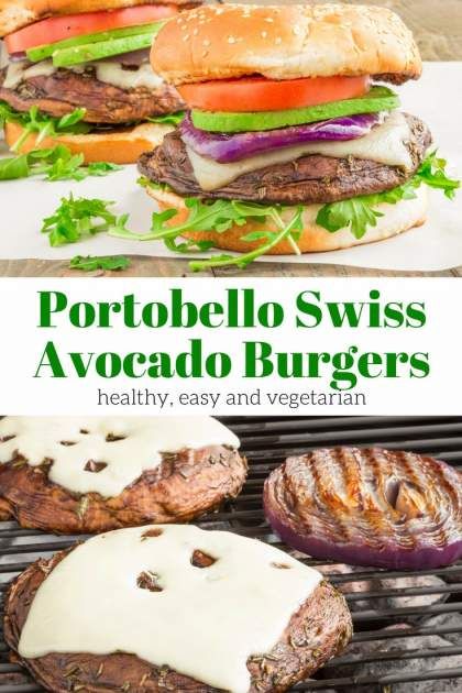 Healthy Recipes : Portobello Burgers with Swiss Cheese and Avocado made on the grill for the perfe…