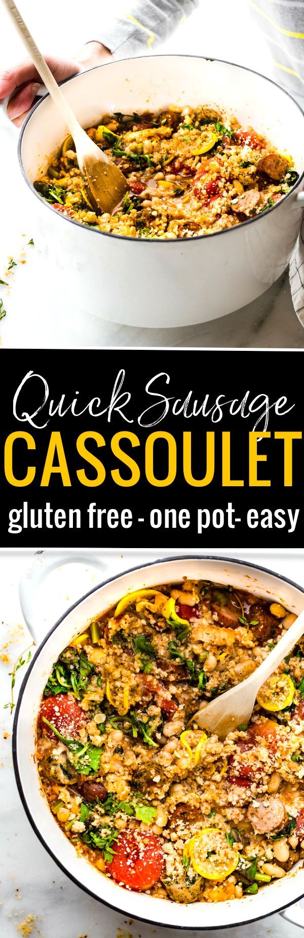 QUICK SAUSAGE CASSOULET WITH GLUTEN FREE ENGLISH MUFFIN BREADCRUMBS! Super easy one-pot meal! It’s great for meal prep, a hearty breakfast, or a wholesome dinner! #udisglutenfree www.cottercrunch.com