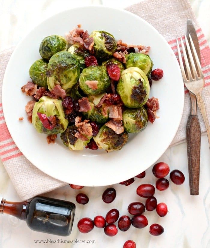 Healthy Recipes : Roasted Brussels Sprouts with Cranberries, Bacon, and Maple