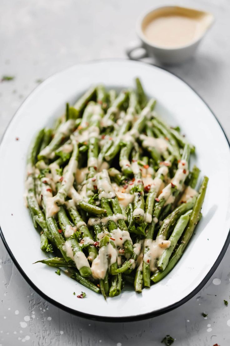 Roasted Green Beans with Spicy Tahini Sauce – Roasted Green Beans with Spicy Tahini Sauce is the perfect side dish for any occasion. It goes well with fish, chicken and meat. (Low-carb, Paleo, Whole30, Gluten-free) #primaverakitchen #glutenfree #lowcarb #whole30 #paleo #sidedish #healthysidedish #greenbeans